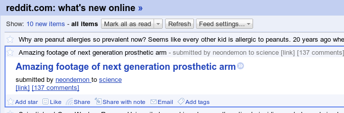 What this does: it takes the reddit RSS feeds, and rewrites them. The images and videos linked to by a given reddit article are now placed in the article itself, so you have the content right in front of you.